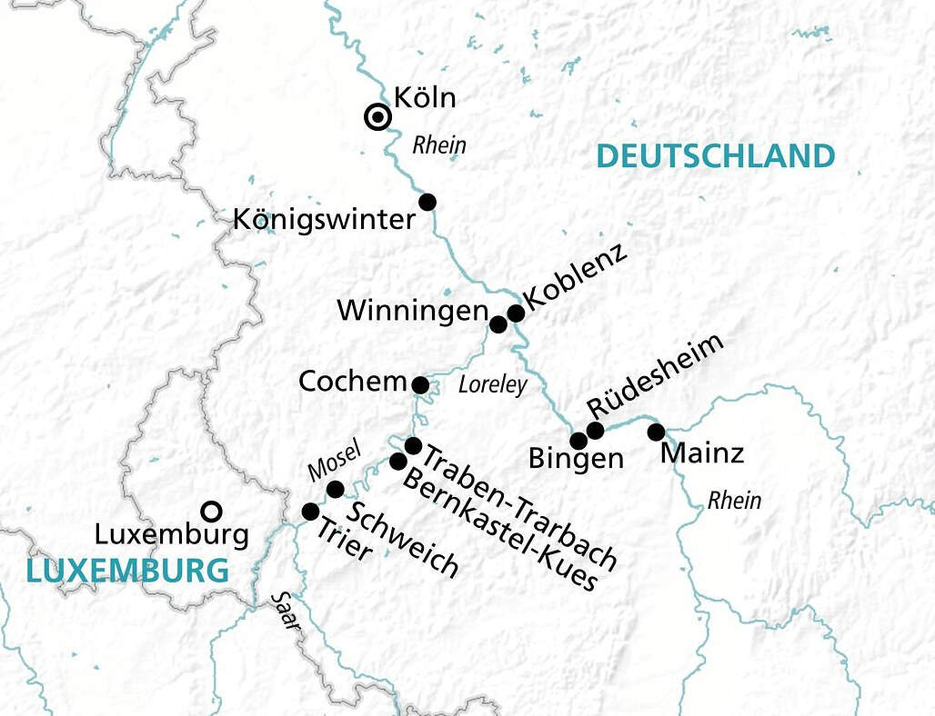 geplante Landausflüge: Trier ca. € 54,- / Luxemburg ca. € 59,- / Die kleine Luxemburger Schweiz ca. € 59,-