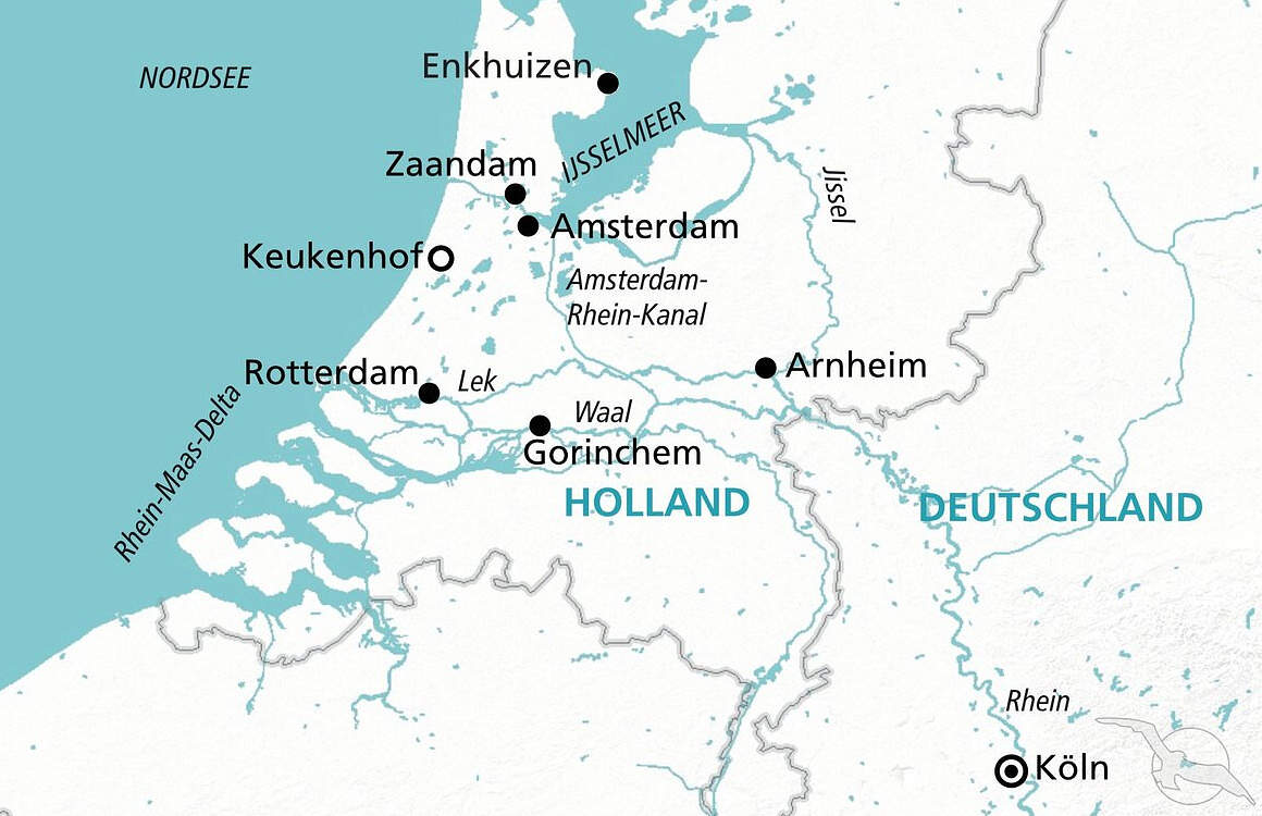 geplante Landausflüge: Windmühlen Zaanse Schans und Edam ca. € 36,- / Amsterdam zu Fuß und per Tram ca. € 39,- / Keukenhof ca. € 73,- (nur vom 20.03.27 - 04.05.27)