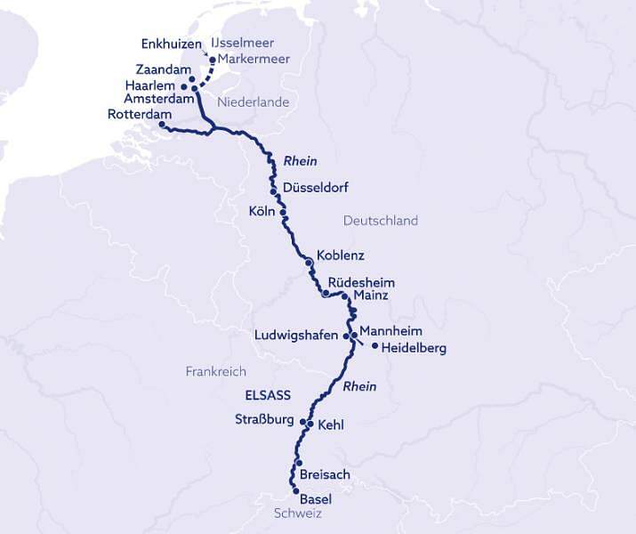 Erleben Sie die Vielfalt des Rheins mit unserer beliebten MS Rhein Melodie und entdecken Sie "Vater Rhein" während dieser Rheinkreuzfahrt in seiner ganzen Schönheit vom schweizerischen Voralpenland bis zu den weitläufigen Landschaften der Niederlande. Freuen Sie sich auf sagenumwobene Landschaften, geschäftige Städte und romantische Dörfer. Flanieren Sie durch pulsierende Metropolen wie Straßburg oder Amsterdam und genießen Sie das spektakuläre Flusskino im UNESCO-Welterbe Mittelrheintal. Abwechslung pur am Ufer: Von den Bergen des Schwarzwalds, durch das sagenumwobene Mittelrheintal bis zu den weitläufigen Polderlandschaften der Niederlande.