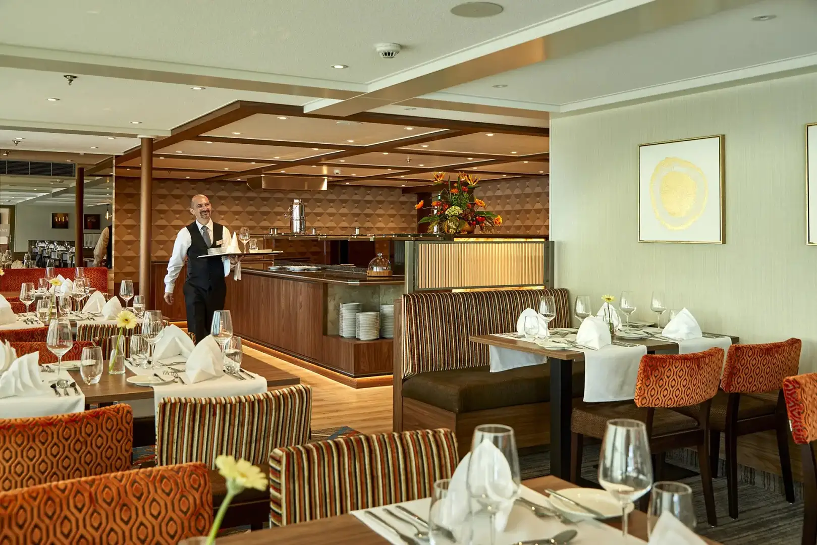 MS VistaSky hat ab 2020 die Flotte von 1A Vista Reisen verstärkt. Die "kleine Schwester" der luxuriösen VistaStar ist 110 Meter lang und bietet 181 Gästen Platz. Mit 14,5 m² haben Sie in den Kabinen (auf Mittel- und Oberdeck mit französischen Balkonen) viel Platz (Hauptdeckkabinen ca. 13 m²). Eine Kaffeemaschine kann auf Wunsch an der Rezeption ausgeliehen werden. Eine Besonderheit ist das bordeigene Steakhouse "VistaGrill" im Heckbereich. Neben dem normalen Bordrestaurant wird das kleine, feine À-la-carte-Restaurant eine Auswahl an hochwertigen Steakgerichten anbieten. Die All-Inclusive Flusskreuzfahrten mit MS VistaSky sind auf Rhein, Main, Donau und über den Main-Donau-Kanal möglich. Für Ihren Komfort verfügt MS VistaSky über einen Lift zu allen Passagierdecks und einen Treppenlift zum Sonnendeck. In der bordeigenen finnischen Sauna können Sie den Tag geruhsam ausklingen lassen.