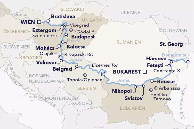 Wollten Sie schon immer einmal eine große Donaukreuzfahrt durch 7 Länder bis zur Donaumündung unternehmen? Einen spannenden Bootsausflug durch das Donaudelta unternehmen, oder das berühmte Eiserne Tor passieren, wo sich die Donau auf einer Länge von rund 110 Flusskilometern zwängt? Dann ist diese Donaukreuzfahrt im September 2026 mit Amadeus Nova genau die richtige Flussreise! Sie starten diese Donaukreuzfahrt in Rumänien. Wo Sie zunächst die erste Nacht im Hotel in Bukarest verbringen - eine Stadtrundfahrt durch die rumänische Hauptstadt mit ihren Prachtbauten ist natürlich eingeschlossen. Über Belgrad und Südungarn geht es weiter nach Budapest, und über Bratislava nach Wien - dem Ziel dieser Donaufahrt.