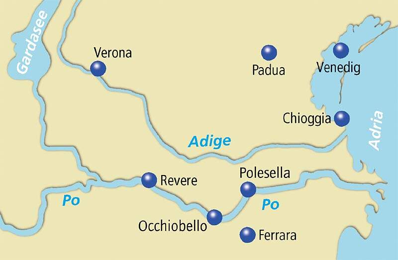 Eine herrliche Flussreise auf dem Po, die Ihnen Italien von einer anderen und dennoch sehr sehenswerten Seite zeigt. An Bord der MS Michelangelo erleben Sie die Lagune von Venedig, erkunden das Veneto, die Lombardei - die Wiege der Renaissance - und Emilia-Romagna. Während dieser Flusskreuzfahrt lernen Sie faszinierende Städte wie Venedig, Padua, Verona und Mantua kennen und erhalten Eindrücke in das Leben rund um die Lagune von Venedig und die Region rund um den Fluss Po. Lernen Sie kulinarische Köstlichkeiten wie den Parma Schinken kennen und tauchen Sie ein in die Geschichte.