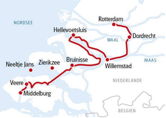 Mit Stopps in historischen Orten wie Middelburg - die einstige Handelsstadt der VOC mit prächtigen Giebelhäusern, das malerische, kleine Städtchen Veere und Dordrecht - die älteste Stadt Hollands mit charmantem Hafenviertel, ist auch für Kultur gesorgt.