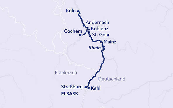 Ihre Kabinen sind ab ca. 15:00 Uhr an Bord von MS Rhein Symphonie bezugsfertig. Dann beginnt bereits Ihre Themenkreuzfahrt zu "Rhein in Flammen® bei St. Goar" und Sie verlassen die Domstadt Köln.