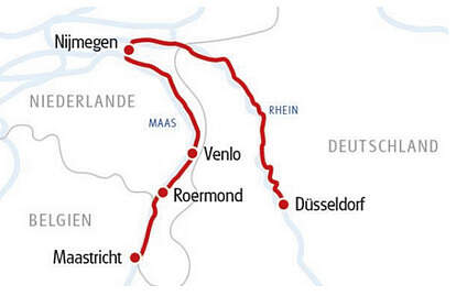 An Bord von MS SE-Manon geht es im April 2026 auf eine herrliche Flusskreuzfahrt auf dem Rhein, die Sie auch ein Stück über die Maas führen wird. Auf Ihrer Reiseroute während dieser Rheinkreuzfahrt liegen sowohl reizvolle Städte und Städtchen, als auch idyllische Landschaften, die das Bild dieser Reise prägen. Ein Highlight dieser Flussreise ist sicherlich das mittelalterliche Maastricht, mit seiner kopfsteingepflasterten Altstadt. Zudem erwartet Sie Nijmegen im Gelderland, Roermond, als auch Venlo in der Provinz Limburg. Nach 6 Tagen erreicht MS SE-Manon wieder die Rheinmetropole Düsseldorf.