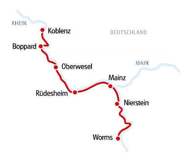 Diese Radkreuzfahrt mit unserer MS Olympia ist sowohl für Einsteiger geeignet, als auch für Genießer. Sie führt Sie durch die schönsten Weinanbaugebiete entlang des Rheins. Sie starten diese Radreise per Schiff in Mainz - der Landeshauptstadt von Rheinland-Pfalz - und radeln bis ins schöne Koblenz, wo die Mosel in den Rhein mündet. Vorbei an vielen alten prachtvollen Burgen geht es den Rhein entlang. Sie radeln und fahren während Ihrer Reise durch das UNESCO Welterbe Oberes Mittelrheintal und können sich von idyllischen Landschaften verzaubern lassen. Auf Ihrer Reiseroute liegen Boppard, Oberwesel, Rüdesheim, Nierstein und Worms. Willkommen an Bord von MS Olympia!