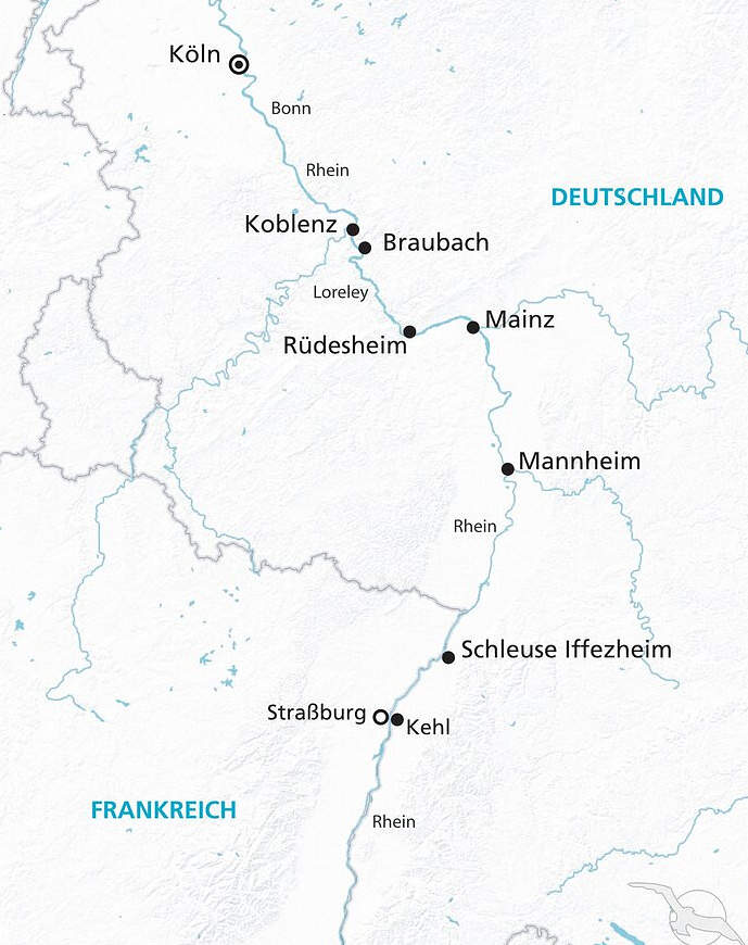 Ihre Kurzkreuzfahrt auf dem Rhein, die Sie bis nach Straßburg führen wird, startet in der Rheinmetropole Köln. Hier erwartet Sie MS Aurelia ab ca. 14:30 Uhr zur Einschiffung. Gegen 15:30 Uhr heißt es dann auch schon "Leinen los" und Sie fahren stromaufwärts den Rhein entlang. Dabei passieren Sie Bonn.
