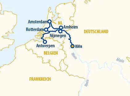 Mit MS VistaNova reisen Sie über Silvester nach Holland und Belgien. Lassen Sie die Hektik und den Stress hinter sich und genießen Sie während dieser Rheinkreuzfahrt die Tage zwischen den Jahren und über den Jahreswechsel. Bei festlicher Atmosphäre führt Sie MS VistaNova nach Nijmegen im Gelderland - die älteste Stadt der Niederlande, nach Antwerpen, Rotterdam mit der einzigartigen Skyline und nach Amsterdam. Genießen Sie an Bord die festliche Stimmung und feiern Sie gemeinsam in das neue Jahr 2027 vor Rotterdam. Bevor es langsam wieder entlang der winterlichen Flusslandschaft des Rheins nach Köln geht, legen Sie noch einen Stopp in Arnheim ein. Willkommen 2027!