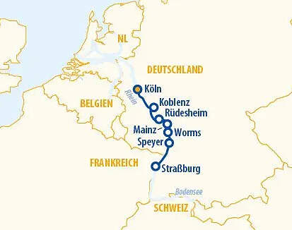 Verbringen Sie doch einmal die feierlichen Tage zwischen den Jahren und am Silvesterabend ganz entspannt während einer Rheinkreuzfahrt. An Bord unserer MS VistaGracia - unserem All-Inclusive Flusskreuzfahrtschiff - reisen Sie von Köln in Richtung Straßburg im französischen Elsass und wieder zurück. Flussaufwärts führt Sie diese Rheinkreuzfahrt über den Jahreswechsel zudem in die alte Kaiserstadt Speyer, nach Rüdesheim am Rhein und Koblenz. Winterliche Flusslandschaften entlang des Rheins säumen dabei Ihren Weg. Den 31.12.26 erleben Sie stimmungsvoll an Bord - so kann das neue Jahr beginnen!