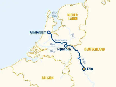 Während der Weihnachtszeit können Sie mit unserer MS VistaRio eine ganz besondere Kurzkreuzfahrt auf dem Rhein im November 2026 unternehmen. Weihnachtszeit ist Shoppingzeit! Die Shopping-Metropole Amsterdam lädt zum Erkunden ein. Ausgefallenes, Handgemachtes, holländische Spezialitäten... - hier finden Sie bestimmt für jeden das richtige Geschenk. Und auch vielleicht für sich selbst. Diese 4-tägige Kurzreise bietet Ihnen eine erholsame Auszeit und stimmt Sie optimal auf die Weihnachtstage ein. Reisen Sie mit MS VistaRio von Köln aus den Rhein entlang in Richtung Holland.