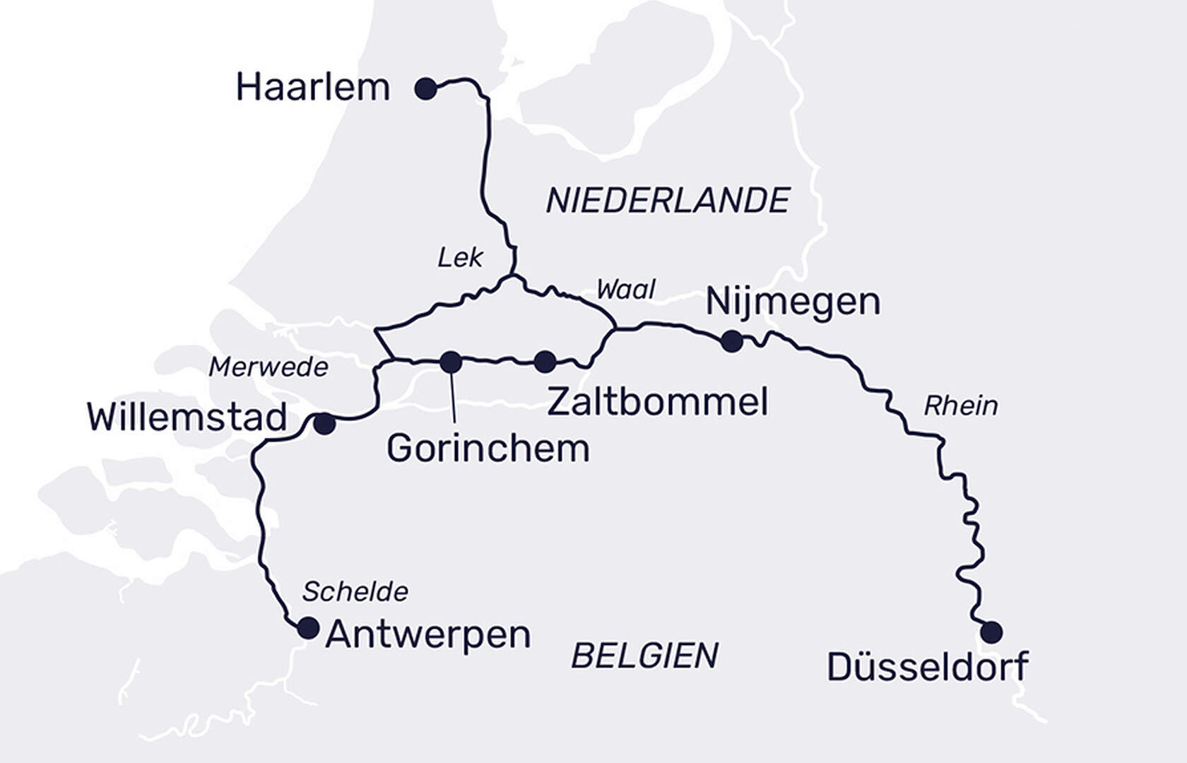 Tauchen Sie ein in die zauberhafte Welt einer Weihnachtskreuzfahrt auf dem Rhein und erleben Sie die Feiertage besonders stilvoll an Bord der MS Elegant Lady. Festlich geschmückt gleiten Sie durch winterliche Flusslandschaften zu einigen der schönsten Städte der Niederlande und Belgiens. Haarlem und das pulsierende Amsterdam versetzen Sie mit Lichtern, Grachten und Weihnachtsflair sofort in Feststimmung. Heiligabend in Antwerpen wird zu einem unvergesslichen Moment, wenn die prachtvoll illuminierte Liebfrauenkathedrale Ehrfurcht weckt und am Abend eine elegante Weihnachtsgala an Bord auf Sie wartet. Am 1. Weihnachtstag entdecken Sie das sternförmig angelegte Willemstad mit seiner romantischen Altstadt und dem historischen Binnenhaven, gefolgt von der Festungsstadt Gorinchem am 2. Weihnachtstag. Zwischen den Jahren runden Zaltbommel und Nijmegen mit ihren beeindruckenden Kirchen diesen Genuss für alle Sinne ab. Diese Flusskreuzfahrt zu Weihnachten verbindet Besinnlichkeit, Kultur und Komfort - der perfekte Abschluss für eine stimmungsvolle Festzeit auf dem Rhein.