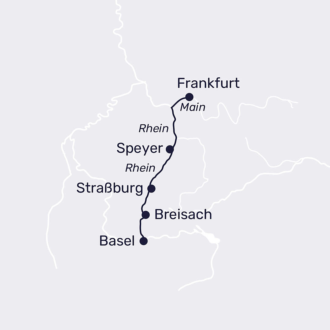 Gehen Sie in Frankfurt am Main an Bord unserer eleganten MS Lady Cristina und erleben Sie eine herrliche Rheinkreuzfahrt, die Kultur, Genuss und faszinierende Landschaften perfekt verbindet. Schon beim Ablegen gleitet die Skyline Frankfurts gemächlich vorbei, während Sie an Deck entspannen und sich auf einige der schönsten Städte entlang des Rheins freuen. Historische Sehenswürdigkeiten, charmante Altstädte und kulinarische Höhepunkte machen diese Flussreise zu einem unvergesslichen Erlebnis. In Speyer beeindruckt der weltberühmte Kaiserdom und das mittelalterliche Altpörtel als eines der höchsten Stadttore Deutschlands. Breisach begeistert mit seinem barocken Rheintor und ist idealer Ausgangspunkt für einen Ausflug ins malerische Colmar, wo farbenfrohe Fachwerkhäuser und elsässisches Flair warten. In Basel entdecken Sie das größte Kunstmuseum der Schweiz, bevor Sie in Luzern mit der Kapellbrücke die älteste noch erhaltene Holzbrücke Europas bestaunen. Den krönenden Abschluss bildet Straßburg mit seiner romantischen Altstadt, exzellenten elsässischen Weinen und französischem Savoir-vivre, bevor es über die imposante Schleuse Iffezheim zurück nach Frankfurt geht.