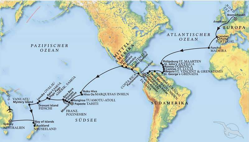 In 77 Tagen nehmen Sie an Bord von MS Amera Kurs auf Down Unter - diese kleine Weltreise führt Sie von Bremerhaven an der Weser bis Sydney / Australien. Erleben Sie den Heiligen Abend festlich an Bord und den Jahreswechsel 2025/26 vor der Karibikinsel St. Maarten. Nachdem Sie den berühmten Panama Kanal durchquert haben geht es entlang der Westküste Mittelamerikas bis nach Französisch Polynesien. Die Südsee erwartet Sie! Nachdem Sie Amerik. Samoa, Samao und auch die Fidschi Inseln besucht haben, reisen Sie weiter nach Neuseeland, wo Sie die Nordinsel mit der Bay of Islands und Auckland empfängt. Sie kreuzen weiter durch die Tasmansee bis Sie die Skyline von Sydney mit dem berühmten Opernhaus erwartet. Per Flug geht es schließlich ganz bequem in Richtung Heimat.