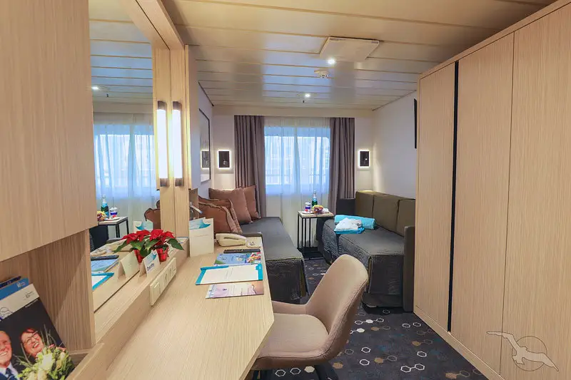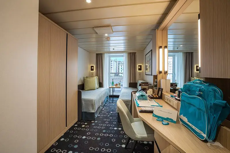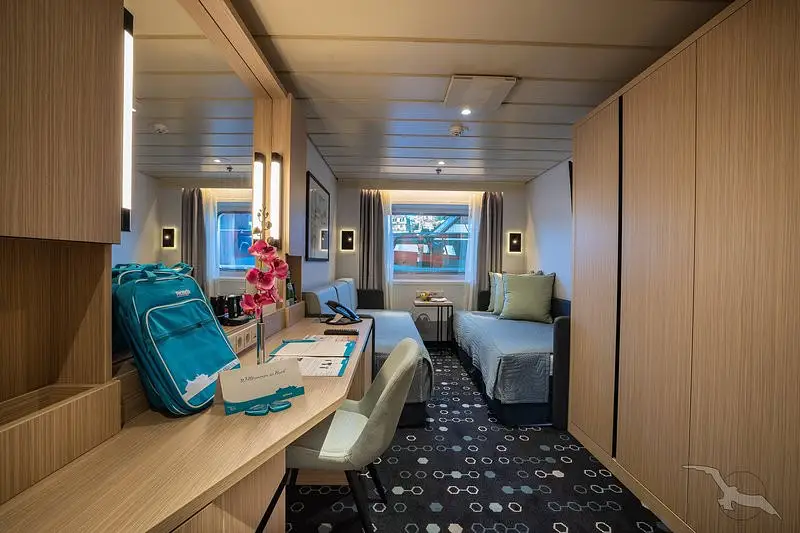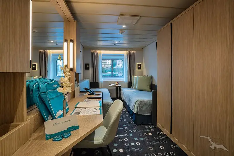 Diese 2-Bett-Kabinen liegen außen auf dem auf dem Saturn-/Orion- und Apollo-Deck und sind mit großem Fenster (nicht zu öffnen) ausgestattet.