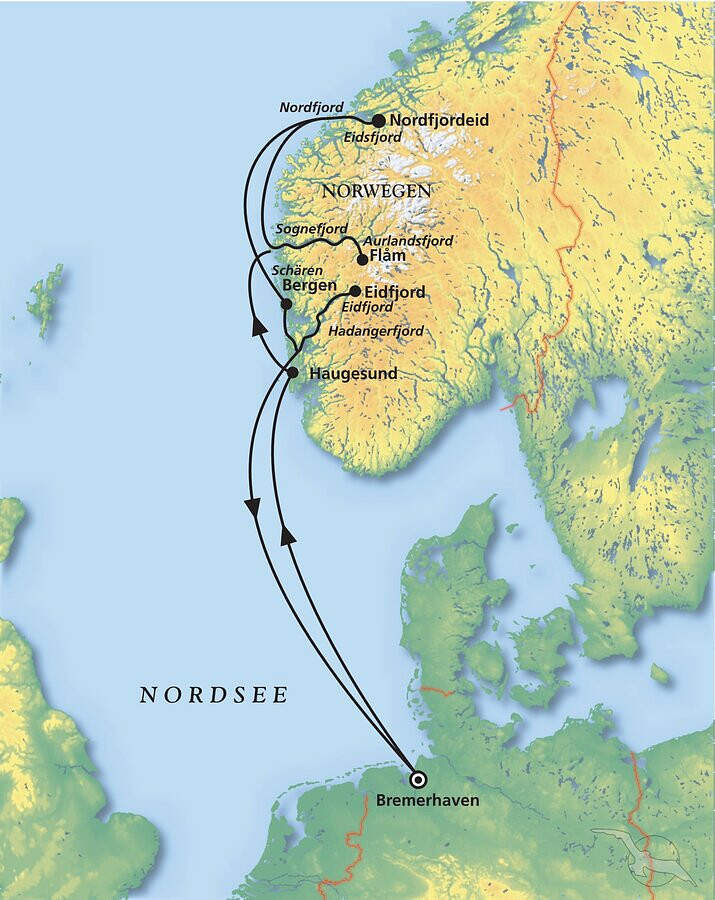 Gegen 09:00 Uhr erreicht MS Amera wieder den Hafen von Bremerhaven. Mit vielen wunderbaren Eindrücken im Gepäck gehen Sie nach dem Frühstück von Bord. Ihre Norwegenkreuzfahrt ist zu Ende.