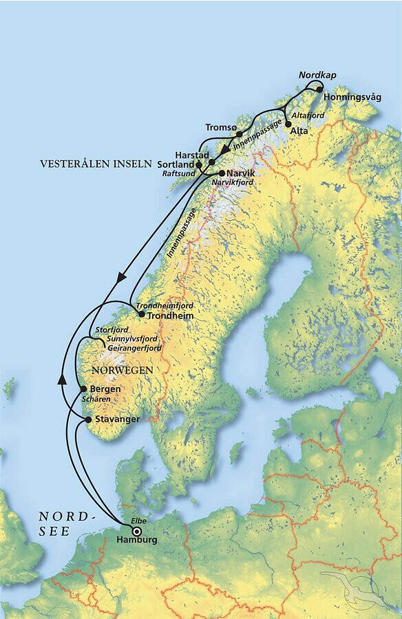 Begeben Sie sich mit MS Amera auf eine unvergessliche 17-tägige Kreuzfahrt ins winterliche Norwegen. Folgen Sie den traditionsreichen Routen der Postschiffe und erleben Sie den Zauber des Nordens zu einer Zeit, in der Norwegen sein vielleicht schönstes Gesicht zeigt: tief verschneite Landschaften, glitzernde Fjorde, stille Schärenwelten und mit etwas Glück das eindrucksvolle Farbspiel der Polarlichter. Während MS Amera komfortabel durch geschützte Innenpassagen und majestätische Fjorde gleitet, erwarten Sie unzählige Höhepunkte: die arktische Kulturmetropole Tromsø, das geschichtsträchtige Trondheim, die charmanten Städte Stavanger und Bergen sowie der legendäre Geirangerfjord, der im Winter eine ganz besondere Magie ausstrahlt. Und natürlich darf auch der Besuch am sagenumwobenen Nordkap nicht fehlen - ein Sehnsuchtsziel vieler Reisender. Freuen Sie sich auf eine Norwegenkreuzfahrt voller Kontraste, Naturwunder und unvergesslicher Eindrücke. Lassen Sie sich an Bord verwöhnen, genießen Sie die behagliche Atmosphäre der Amera und gönnen Sie sich eine Auszeit, die Sie so schnell nicht vergessen werden. Jetzt einsteigen, zurücklehnen - und Norwegens Wintermärchen erleben!