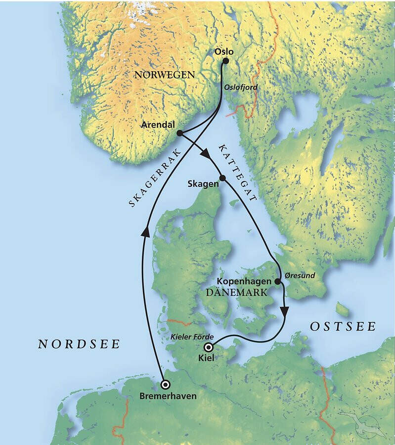 Freuen Sie sich auf eine erlebnisreiche einwöchige Kreuzfahrt mit MS Amadea, die Sie ab Bremerhaven einmal rund um Dänemark führt und schließlich zur stimmungsvollen Kieler Woche bringt. Auf dieser abwechslungsreichen Seereise entdecken Sie die königlichen Hauptstädte Oslo und Kopenhagen, gleiten durch malerische Fjorde und Schärenlandschaften – darunter den beeindruckenden Oslofjord - und kreuzen durch Skagerrak und Kattegat, während Sie Dänemark umrunden. Genießen Sie zudem abwechslungsreiche Stopps in Arendal an der norwegischen Südküste sowie im charmanten Skagen, dem nördlichsten Ort Dänemarks. Den festlichen Abschluss bildet das maritime Volksfest der Kieler Woche, bevor Sie in Kiel von Bord gehen. An Bord erwartet Sie der gewohnte Komfort Ihres Kreuzfahrtschiffes: hervorragende Küche, erstklassiger Service und ein vielfältiges Ausflugsprogramm - etwa ein Besuch des historischen Næs Eisenwerks oder ein Abstecher ins schwedische Malmö von Kopenhagen aus. Lassen Sie sich verwöhnen und erleben Sie eine Reise voller maritimer Höhepunkte.