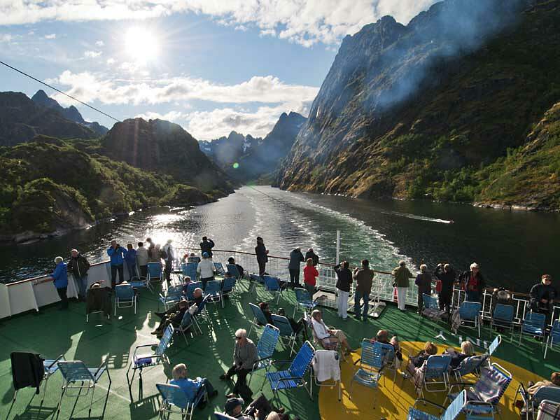Das Schiff wird im Laufe des Morgens offiziell den nördlichen Polarkreis überqueren. Sie fahren den Vestfjord entlang und erreichen am Nachmittag Svolvær auf den Lofoten.
