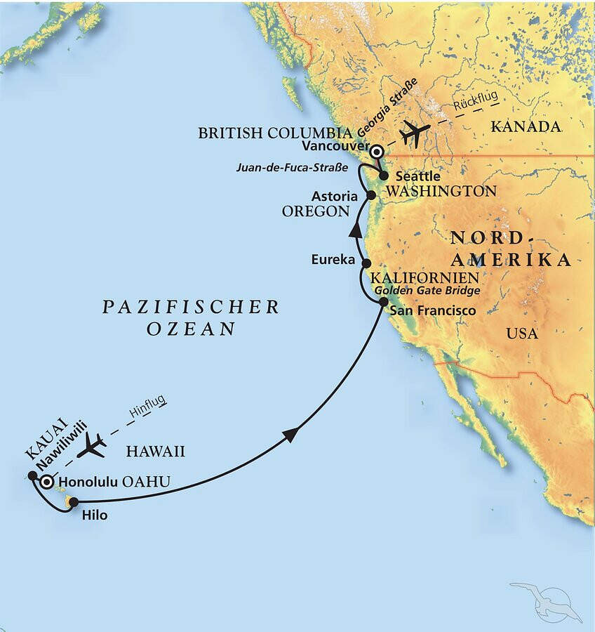 Erleben Sie eine außergewöhnliche Nordamerika-Kreuzfahrt mit MS Artania und entdecken Sie die Vielfalt der Pazifikküste so umfassend wie nie zuvor. Diese einmalige Route verbindet tropische Inselträume auf Hawaii mit imposanten Metropolen und spektakulären Naturlandschaften der USA und Kanadas. Nach entspannten Seetagen über den Pazifik gleiten Sie unter der weltberühmten Golden Gate Bridge hindurch und folgen anschließend der reizvollen Küste bis nach Vancouver. Komfort, Genuss und entschleunigtes Reisen machen diese Kreuzfahrt zu einem unvergesslichen Erlebnis für Entdecker. Den Auftakt bildet der hawaiianische Archipel mit Honolulu, Nawiliwili und Hilo, wo üppiger Regenwald, Vulkane und Traumstrände Südseeflair versprühen. In San Francisco erwarten Sie weltbekannte Sehenswürdigkeiten, kreative Viertel und ein unvergleichliches Lebensgefühl. Die kleineren Häfen Eureka und Astoria begeistern mit rauer Küstenromantik, Geschichte und Naturerlebnissen im pazifischen Nordwesten. Über die landschaftlich eindrucksvolle Juan-de-Fuca-Straße erreichen Sie Seattle, eine lebendige Metropole zwischen Ozean und Bergen. Den krönenden Abschluss bildet das kosmopolitische Vancouver, wo moderne Architektur auf spektakuläre Natur trifft. Bei dieser Nordamerikakreuzfahrt sind übrigend die Flüge ab/an Frankfurt Sie bereits inbegriffen.