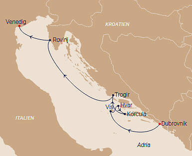 Erleben Sie eine 8-tägige Adria-Segelkreuzfahrt mit unserer legendären Sea Cloud II von Dubrovnik bis Venedig - eine Reise voller mediterraner Lebensfreude, kultureller Höhepunkte und landschaftlicher Schönheit. Entlang der kroatischen Küste erwarten Sie sonnenverwöhnte Inseln, historische Hafenstädte und entspannte Sommerabende mit langen Liegezeiten. Unter weißen Segeln gleiten Sie durch das tiefblaue Adriatische Meer und entdecken die perfekte Verbindung aus entschleunigtem Luxus, authentischer Kultur und kulinarischem Genuss. Höhepunkt der Reise ist die spektakuläre Einfahrt nach Venedig, vorbei am Markusplatz - ein unvergesslicher Moment, den nur wenige so erleben dürfen. Die Route führt Sie von der UNESCO-geschützten Altstadt Dubrovniks zur grünen Insel Vis mit dem charmanten Fischerhafen Komiža, bekannt für Weinbau und frische Meeresküche. In Hvar genießen Sie lebendige Atmosphäre und lange Sommerabende, während Korčula mit mittelalterlicher Altstadt und imposanten Wehrtürmen begeistert. Trogir beeindruckt mit römisch-venezianischem Erbe, bevor Sie in Rovinj istrische Spezialitäten und mediterranes Flair kosten. Den krönenden Abschluss bildet Venedig, die Lagunenstadt voller Geschichte, Kunst und Magie.