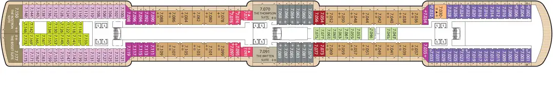 Quadratmeter-Angaben beinhalten Balkone (wenn vorhanden). Die Bilder sind nur Beispiele bestimmter Unterbringungen. Die einzelnen Kabinen und Suiten können davon abweichen.