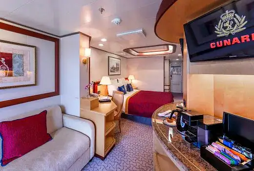 Die Queens Suiten auf Deck 8 unterscheiden sich in Grundriss, Konfiguration und Einrichtung.