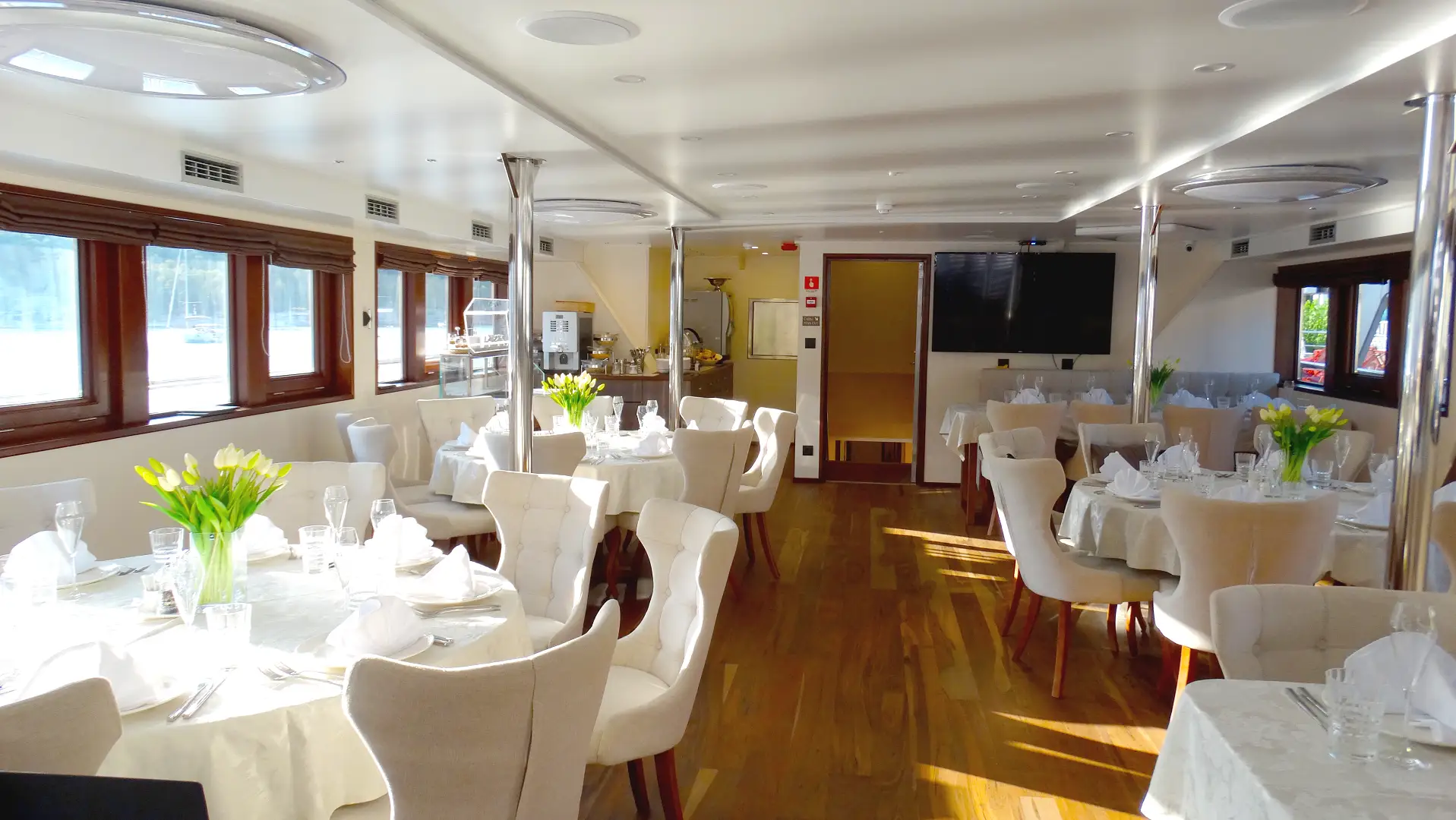 Auf jedem nicko cruises Schiff finden Sie einen gemütlichen Salon mit herrlicher Aussicht auf die vorbeiziehenden Landschaften. Abends spielen dort Bordmusiker gerne zum Tanz auf, tagsüber finden hier Informationsveranstaltungen und Unterhaltungsprogramme statt (variiert je nach Schiff). Auf einigen Schiffen gibt es zusätzlich kleinere Salons, die zum Lesen und Spielen im kleinen Kreis geeignet sind. Auf manchen Schiffen sind kleine Fitness-Bereiche, die kostenlos genutzt werden können sowie Massage gegen Gebühr vorhanden. Die Benutzung erfolgt jeweils auf eigene Gefahr. Auf den Sonnendecks unserer Schiffe finden Sie immer Stühle, Tische und meist auch Liegestühle sowie einen Sonnenschutz. Bitte haben Sie Verständnis, dass die Anzahl begrenzt ist und es eine für die Decksfläche maximal mögliche Ausstattung gibt. Bitte beachten Sie: die nicko cruises Schiffe sind nicht barrierefrei.