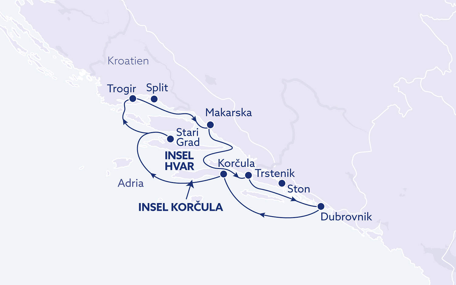 Erleben Sie eine unvergessliche Adriakreuzfahrt in Kroatien an Bord der stilvollen Motoryacht MY Princess und entdecken Sie die schönsten Orte entlang der dalmatinischen Küste. Diese Kreuzfahrt mit Motoryacht durch Dalmatien kombiniert entspanntes Inselhopping mit kristallklaren Badebuchten, mediterraner Küche und faszinierenden Kulturhighlights. Start- und Zielhafen ist die UNESCO-geschützte Altstadt von Trogir, bevor Sie in Makarska traumhafte Strände vor der Kulisse des Biokovo-Gebirges erwarten. In Trstenik genießen Sie ruhige Badepausen und regionale Weine, während Dubrovnik - die legendäre „Perle der Adria“ - mit imposanten Stadtmauern und historischem Flair begeistert. Korčula verzaubert mit mittelalterlichen Gassen und dem Geburtshaus von Marco Polo, bevor das sonnenverwöhnte Stari Grad auf Hvar mit seinem charmanten Hafen und jahrtausendealter Geschichte lockt. Diese Adriakreuzfahrt ist ideal für Genießer, Entdecker und alle, die Kroatien vom Meer aus in seiner ganzen Vielfalt erleben möchten.