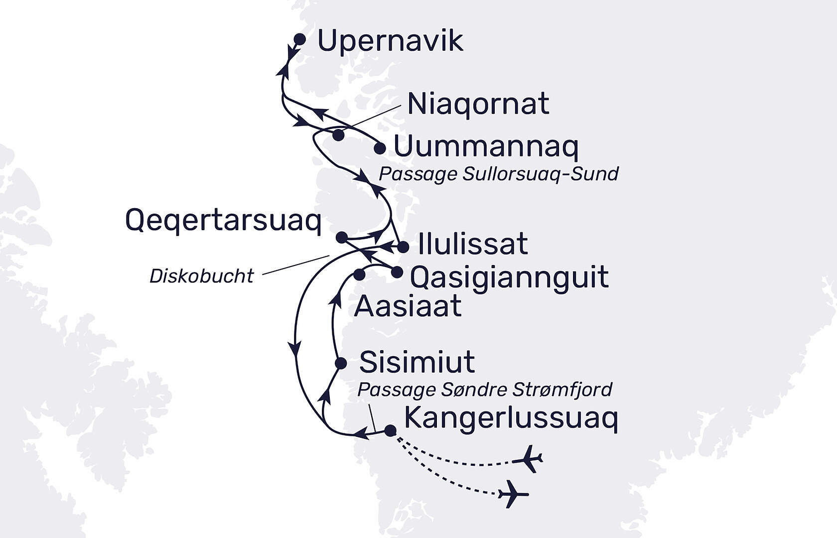 Der genaue Fahrplan in Grönland wird vom Kapitän festgelegt.