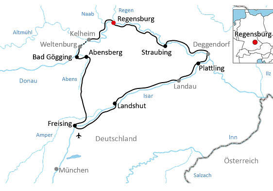 Tourencharakter: Überwiegend Radwege, häufig geschottert, zwischen Freising und Abensberg hügelig. Grundkondition empfohlen