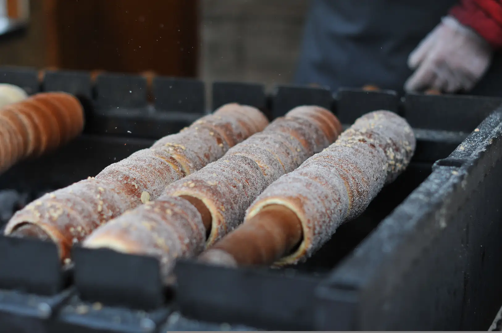 Wer mag, stärkt sich mit einem frisch gebackenen Koláč (Hefegebäck mit Quark oder Mohn) oder gönnt sich einen warmen Baumstriezel (Trdelník) - über offenem Feuer gebacken, mit Zucker, Nüssen oder Zimt verfeinert, ist er besonders in Städten wie Prag oder Český Krumlov ein beliebter Genuss.
