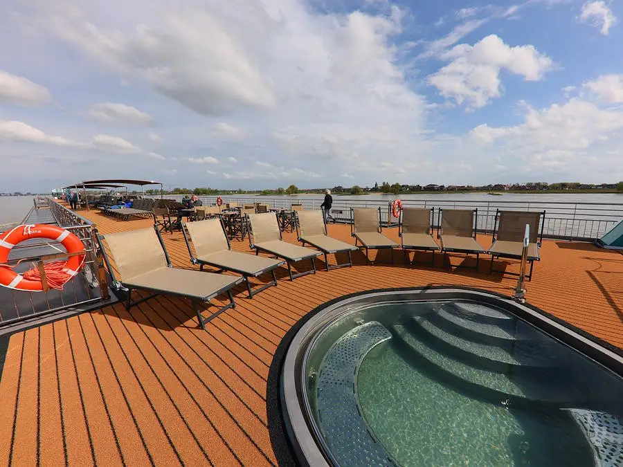 Seit 2024 ist das stilvolle Flusskreuzfahrtschiff MS Amina für Phoenix Reisen unterwegs. Es setzt Maßstäbe in Komfort und Eleganz. Das Schiff der gehobenen Komfort Klasse ist auf Rhein und Mosel, sowie auf der Donau unterwegs. Die ca. zwischen 14-15 m² großen Kabinen (Neptundeck ca. 12 m²) werden Ihnen gefallen. Viele der Kabinen verfügen über einen französischen Balkon und laden zum Entspannen und Verweilen ein. Gesamt stehen Ihnen an Bord von MS Amina 4 Decks zur Verfügung. Die schicken Räumlichkeiten sind lichtdurchflutet, stilvoll, aber nicht überladen eingerichtet und bieten ein angenehmes Ambiente. Genießen Sie während Ihrer Flusskreuzfahrten den Anblick der vorbei ziehenden Landschaften vom Sonnendeck oder der Panorama-Lounge aus. Zwischen Neptun- und Oriondeck steht Ihnen übrigens auch einen Lift zur Verfügung. Und die Energieversorgung an Bord wird durch Solarenergie ergänzt.