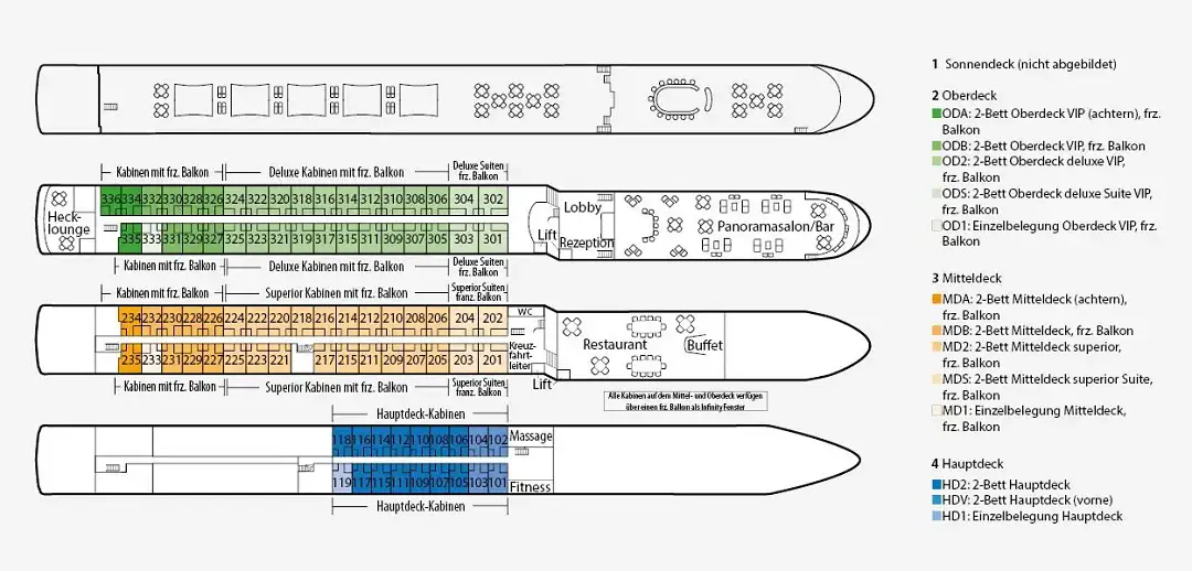 (Die Angabe der Klassifikation entspricht der Einschätzung der Reederei. Dies ist keine offizielle Klassifizierung und dient lediglich als Anhaltspunkt. Fotos © 1AVista, Stand: Sep. 25)