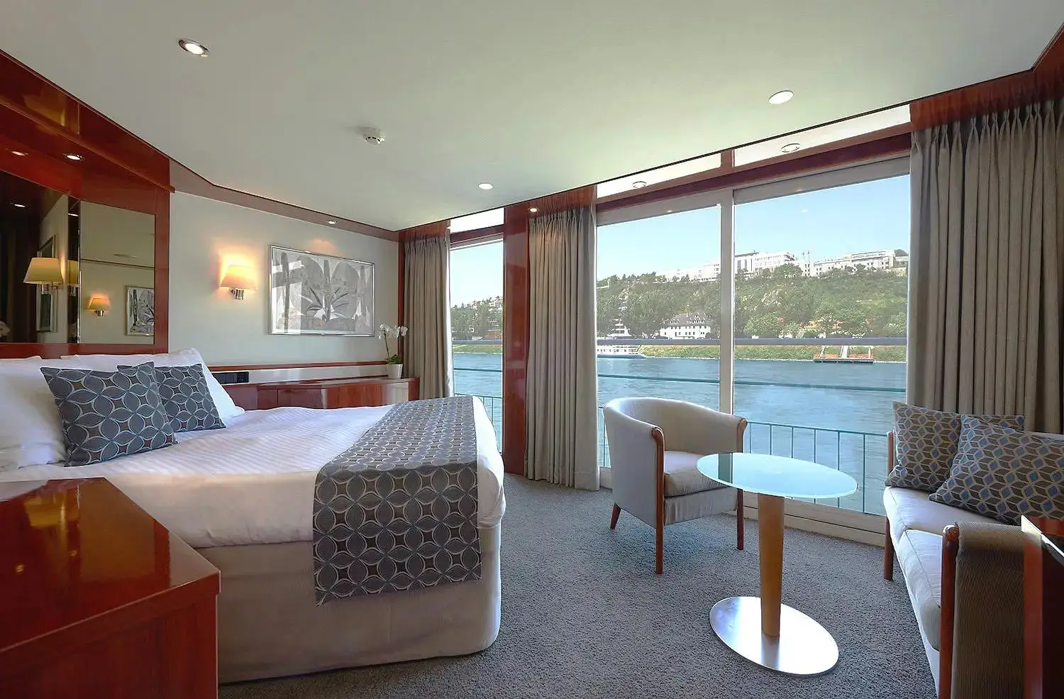 Alle Räume an Bord sind klimatisiert. Während die Klimaanlage im Restaurant, der Lounge und in den öffentlichen Räumen zentral gesteuert wird, können Sie in Ihrer Kabine die Temperatur individuell regulieren. Bitte beachten Sie, dass die Wirksamkeit der Klimaanlage nur bei geschlossenen Fenstern und Türen gewährleistet ist.