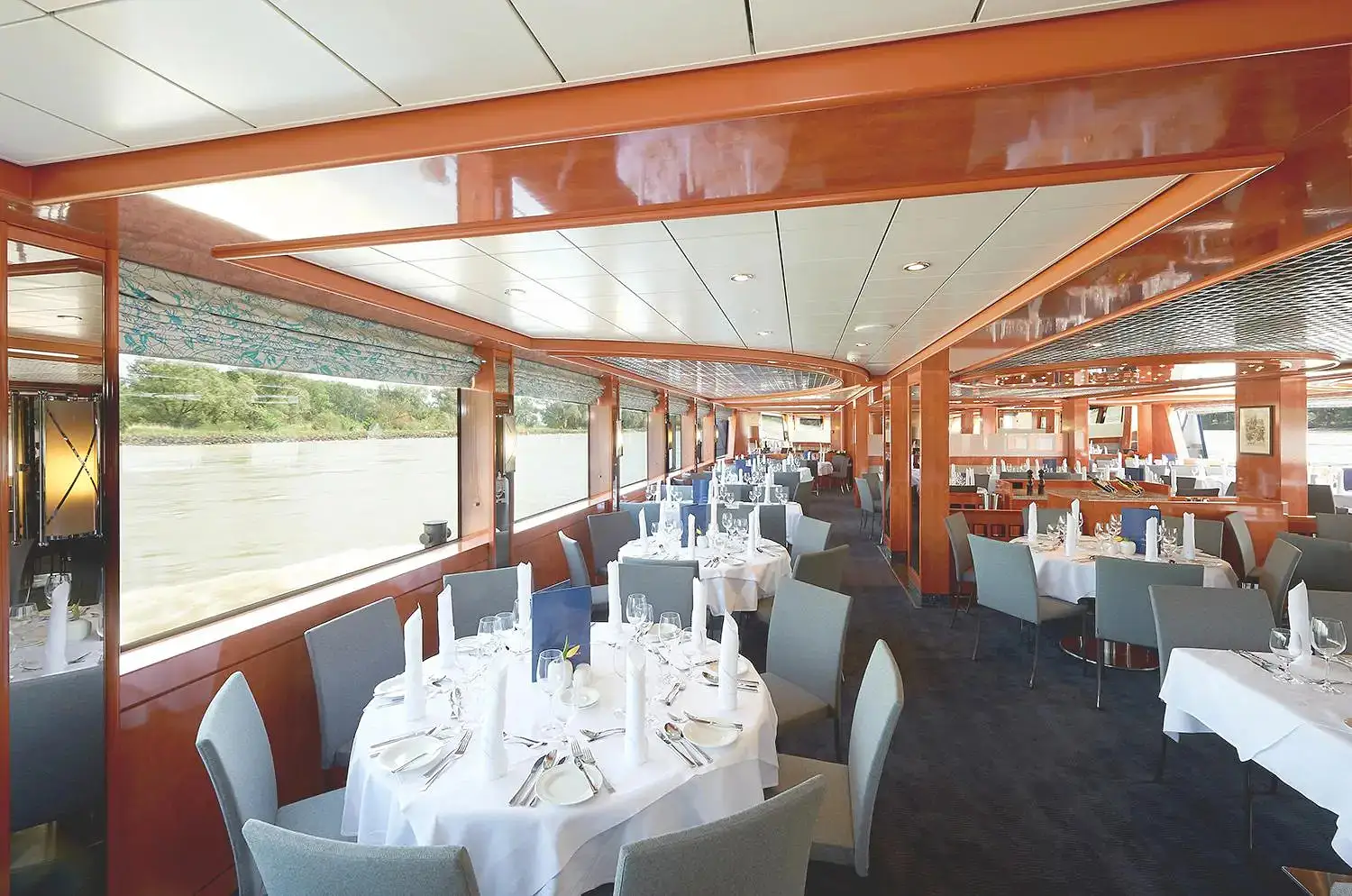 Die Essenszeiten werden im Tagesprogramm bekannt gegeben. Um einen reibungslosen Serviceablauf zu garantieren, bitten wir Sie pünktlich zu Beginn der Essenszeiten zu erscheinen. Die Tischeinteilung wird bei der Anreise vorgenommen. Ihren zugeteilten Sitzplatz behalten Sie bitte während der gesamten Reise bei. Gerne kümmern wir uns um Ihr leibliches Wohl im Restaurant.