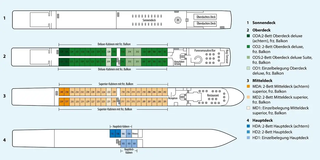 (Die Angabe der Klassifikation entspricht der Einschätzung der Reederei. Dies ist keine offizielle Klassifizierung und dient lediglich als Anhaltspunkt. Fotos © 1AVista, Stand: März 26)