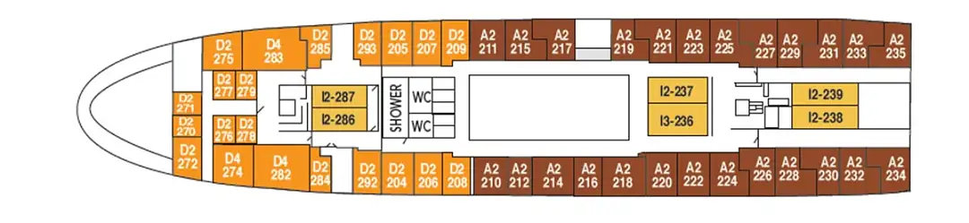 Unsere komfortablen POLAR Innenkabinen (I, D und C) auf Deck A, B und C der Nordstjernen und sind alle mit Ober- und Unterbetten ausgestattet. Die Kabinen der Kategorie D und C verfügen lediglich über ein Waschbecken. Duschen/WC befinden sich auf dem Gang.