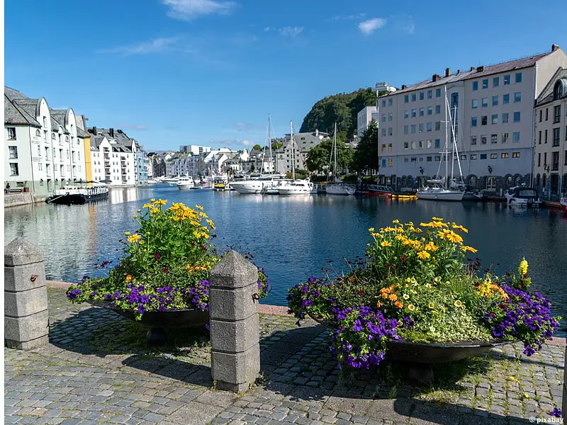 Zauberhaft ist es anzuschauen - das malerische Städtchen Alesund (ca. 56.000 Einwohner), gelegen am Eingang zum Geirangerfjord. Das offene Meer auf der einen Seite, drei hügelige, grüne Inseln und den schneebedeckten Bergen der Sunnmøre Alpen im Hintergrund. Hier treffen Fjorde auf Berge. Schlendern Sie durch die schöne Fußgängerzone in Skansen, bestaunen Sie die wunderschönen alten Jugendstilhäuser - über 450 Stück sind es, und legen Sie einen Fotostopp am Obelisken im Stadtpark ein. Dieses Denkmal wurden zu Ehren von Kaiser Wilhelm II. errichtet, der nach einem Großbrand in der Stadt Hilfstruppen sendete.