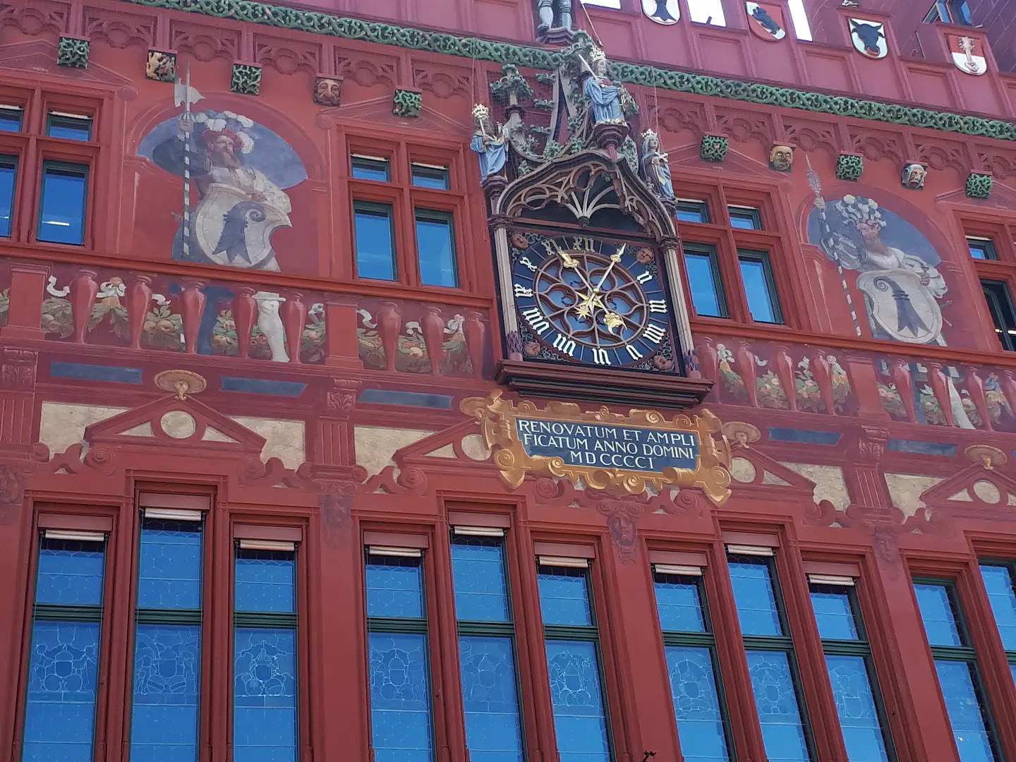 Das Basler Rathaus, gelegen am Basler Marktplatz, stammt aus den Jahren 1504-1514 und wurde im Laufe der Zeit ständig erweitert. Die Ursprünge wurden im spätgotischen Stil errichtet. Im Inneren befinden sich viele Skulpturen und Gemälde, unter anderen von Hans Bock. Im Gebäude befinden sich heutzutage Büros der Staatskanzlei, des Präsidialdepartements, des Regierungsrates und des Großen Rates. Markant ist nicht nur die rote Farbe des Gebäudes, sondern auch die verspiele Fassadenmalerei. Der Eintritt ist frei.