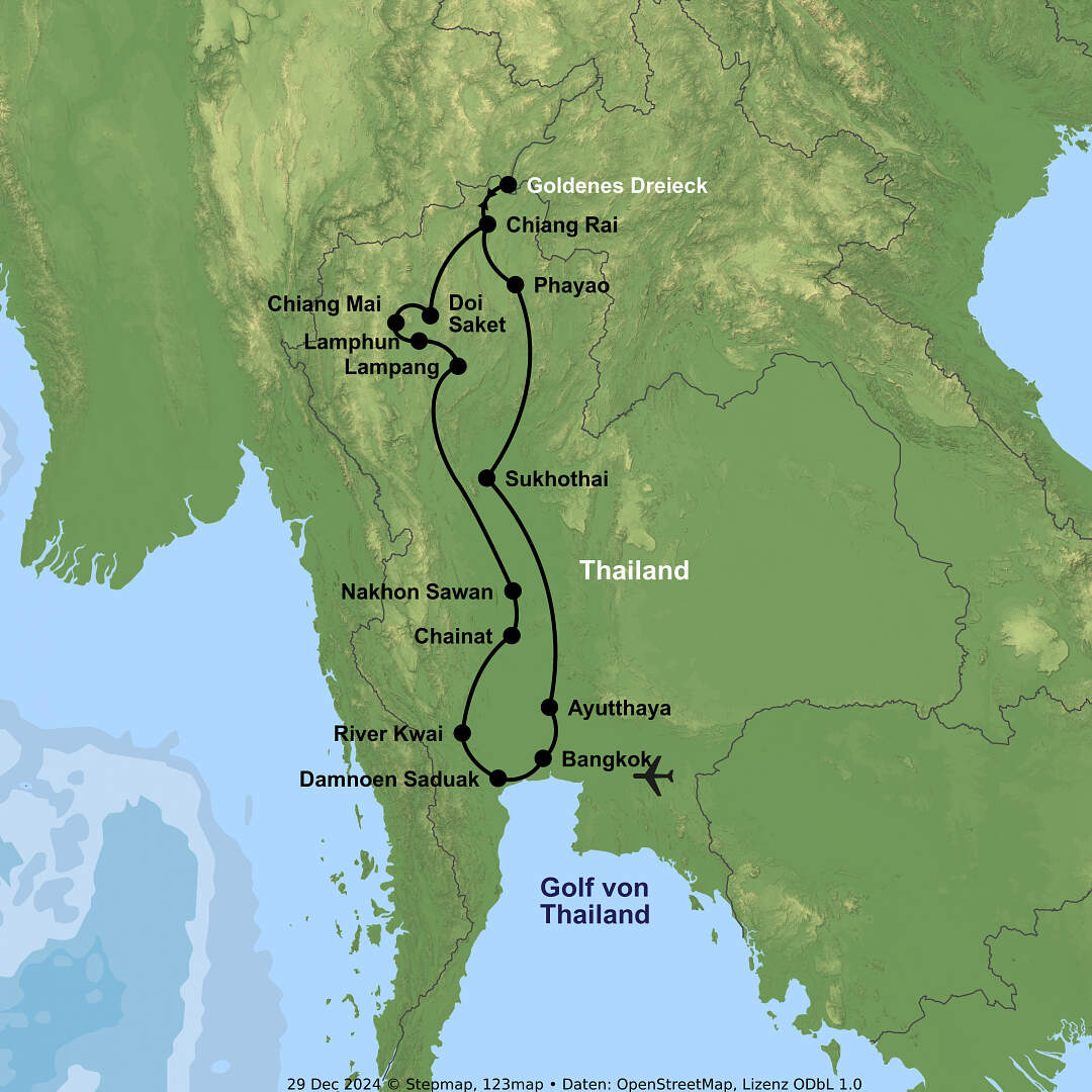 Erleben Sie auf dieser Thailand Rundreise die Höhepunkte dieses faszinierenden Landes. Sie besuchen den historischen Park von Sukhothai, fahren zu nordthailändischen Bergstämmen und in das berühmte "Goldene Dreieck" und mit dem Zug zur berühmten Brücke am River Kwai. Auch erleben Sie auf dieser Rundreise durch Thailand - dem Land des Lächelns - den schwimmenden Markt von Damnoen Saduak. Bestaunen Sie hier das geschäftige Treiben auf dem Fluss. Thailand ist bekannt für seine freundliche Bevölkerung, für seine einzigartigen Tempel und die herausragende Kultur und auch für seine naturbelassenen Landschaften. Eine Rundreise zwischen goldenen Tempeln und exotischen Märkten erwartet Sie in diesem wunderbaren Land Asiens.