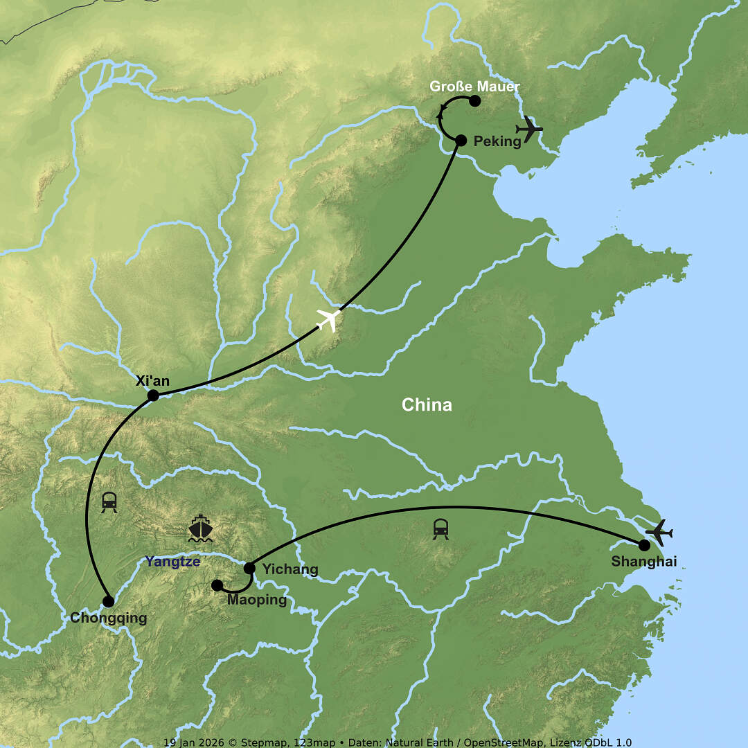 Lernen Sie ein facettenreiches Land kennen: die Volksrepublik China. Es ist ein Land voller Kontraste, in dem Moderne und Tradition aufeinanderstoßen und sich harmonisch mit einander vereinen. Lernen Sie auf dieser China Rundreise prächtige kaiserliche Bauwerke und malerische Landschaften kennen. Zudem besuchen Sie gewaltige Metropolen wie Shanghai und Peking - die Hauptstadt Chinas. Hier erwartet Sie UNESCO Weltkulturerbe wie die Große Chinesische Mauer oder auch der Sommerpalast. Ergänzt wird diese Rundreise durch China mit einer Flusskreuzfahrt auf dem Yangtze. Die beeindruckenden Landschaften entlang des Yangtze werden Ihnen noch lange in Erinnerung bleiben!