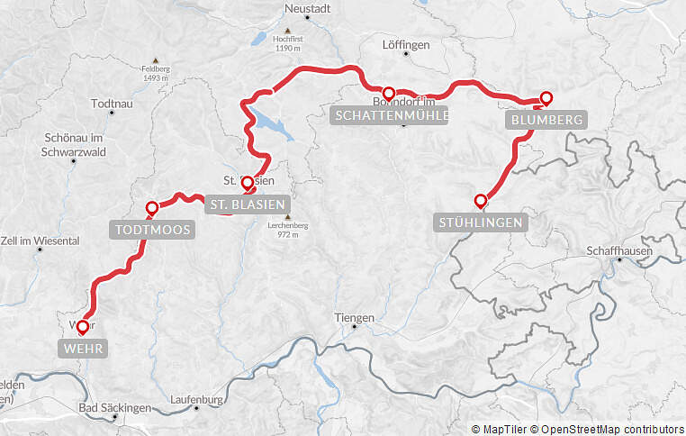 Heute erklimmen Sie den Lehenkopf und bewundern noch einmal den Dom von St. Blasien und erreichen schließlich den Dachsberg. Nun geht es hinunter in den Hotzenwald. Bergwiesen, Heidefelder und wunderschöne Bauernhäuser begleiten Sie auf Ihrem Weg in die Hochwehraschlucht, die Sie durchqueren, bevor Sie Todtmoos erreichen.
