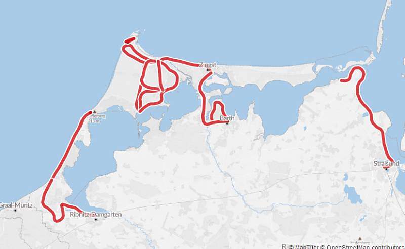 Über den Deich geht es geradewegs nach Zingst und auf vielen Wegen durch oder ums altehrwürdige Seebad. Über die Meinigenbrücke verlassen Sie Zingst und wandern entlang der alten Bahntrasse nach Barth. Dort erwarten Sie verwinkelte Gassen, kleine Cafés und historische Bauten, wie der schöne alte Speicher oder das 35m hohe, als einziges von vier Stadttoren erhaltene Dammtor aus dem 15. Jahrhundert.