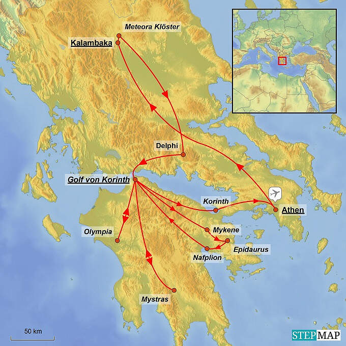Ihre einwöchige Griechenland Rundreise führt Sie durch faszinierende Landschaften und durch die reiche Geschichte des Landes. Sie besuchen unter anderem die Ausgrabungsstätte von Olympia und natürlich die großartige Hauptstadt Athen, welche auf einmalige Art und Weise die Moderne mit der Antike verbindet. Immer wieder bietet sich Ihnen während dieser Studienreise der Blick auf sanfte Hügel und auf antike Ruinen. Nicht zu vergessen die herzliche Gastfreundschaft der Griechen, die Ihnen überall begegnet. Lassen Sie sich von diesem geschichtsträchtigen Land in seinen Bann ziehen und erleben Sie eine unvergessliche Reise in die Heimat der Antike.