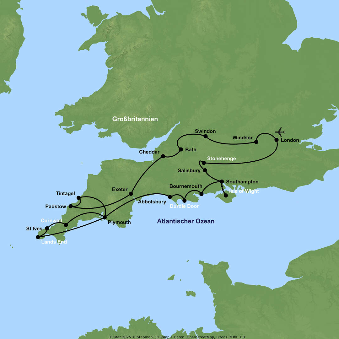 Diese Südengland Rundreise führt Sie entlang wunderschöner Küsten, durch geschichtsträchtige Städte und malerische Landschaften. Erkunden Sie anmutige Städte wie Windsor oder auch die alte Römerstadt Bath und besuchen Sie königliche Bauwerke. In Salisbury unternehmen einen Spaziergang um die Schönheiten der Stadt zu sehen. Cornwall zählt zu den malerischsten Landschaften und ist uns hauptsächlich durch die Verfilmungen der Rosamunde Pilcher Romane bekannt. Entdecken Sie natürlich auch die Weltmetropole London mit ihren bekannten Wahrzeichen. Erleben Sie den malerischen Süden Englands auf dieser einwöchigen Rundreise.