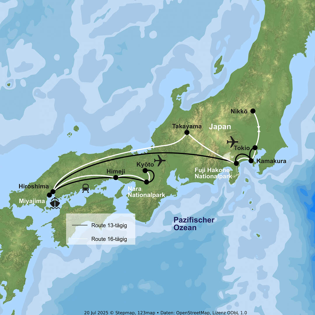 Erleben Sie während dieser Kleingruppenreise den Zauber Japans und reisen Sie zwischen Tradition und Moderne. Erleben Sie Japan in einer kleinen Gruppe mit maximal 16 Teilnehmern - intensiv, authentisch und entschleunigt. Diese Rundreise verbindet jahrhundertealte Tradition mit pulsierender Gegenwart: Von den stillen Tempeln Kyotos über die majestätischen Alpenlandschaften bis hin zum futuristischen Tokio. Sie reisen wie die Einheimischen mit öffentlichen Verkehrsmitteln und tauchen dabei tief in das Alltagsleben des Landes ein. Freuen Sie sich auf unvergessliche Erlebnisse: den Friedenspark in Hiroshima und die heilige Insel Miyajima, eine Einführung in die Zen-Meditation, die imposante Burg Himeji - Japans schönste Festung, entspannte Stunden in einem typischen Onsen und die Naturidylle des Fuji-Hakone-Nationalparks. Entdecken Sie während dieser Rundreise in der Kleingruppe das wahre Japan - voller Kontraste, Schönheit und stiller Magie.