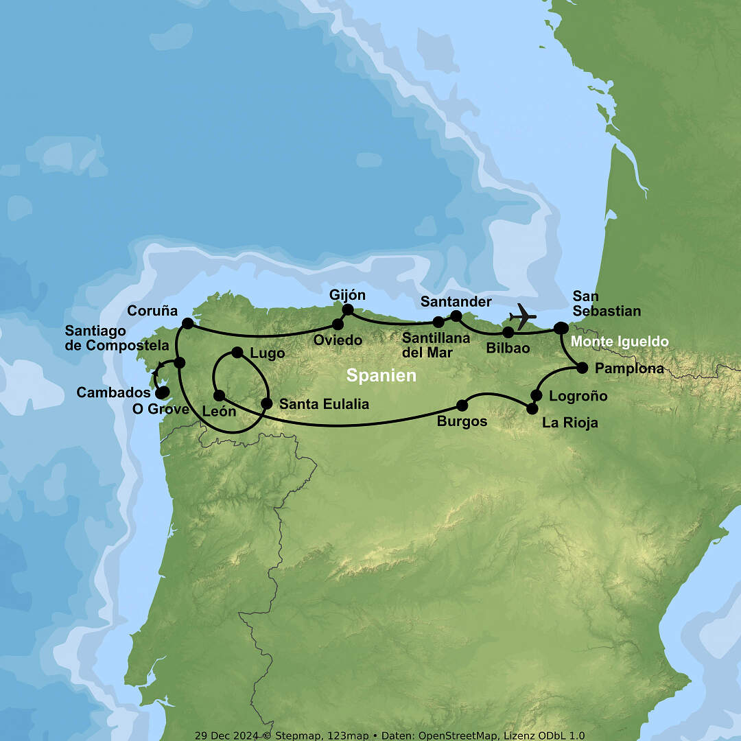 Starten Sie Ihre 10-tägige Rundreise durch Nordspanien in Bilbao und tauchen Sie ein in eine Region voller Vielfalt. Erkunden Sie das legendäre Santiago de Compostela, das zum UNESCO-Weltkulturerbe gehört, genießen Sie eine malerische Bootstour durch die Rías Baixas und lassen Sie sich bei einer Muschelverkostung kulinarisch verwöhnen. Auch erwartet Sie eine Weinverkostung in der La Rioja Region und Cambados. Freuen Sie sich auf eine Reise, die Kultur, Natur und Genuss harmonisch vereint.