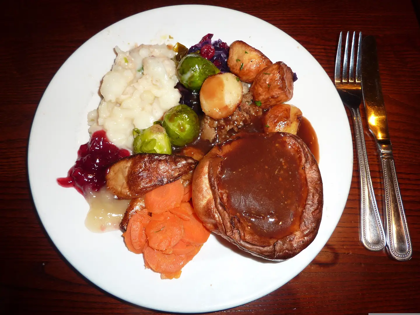 Im Allgemeinen sind die Restaurants im Norden preiswerter als im Süden, und die Auswahl an traditionellen Gerichten ist umfangreicher. Jede Region hat ihre Spezialitäten: z. B. Roast Beef und Yorkshire Pudding, Pies, Rack of Lamb (Lammrücken) und zahlreiche Fischgerichte, allen voran Fish & Chips, im Teigmantel fritiertes Fischfilet, meist Kabeljau, mit Pommes Frites. Beliebte Süßspeisen sind Spotted Dick (eine im Wasserbad zubereitete kuchenähnliche Nachspeise mit Rosinen und Korinthen), Plum Duff (Teigrolle mit Schmalz und Pflaumen), Trifle (Biskuitteigschichten mit Fruchtgelee, Sahnecreme und Alkohol), Apple Crumble with Custard (warmes Apfelkompott mit Kuchenstreusel und Vanillesoße) und Syllabub (ein mittelalterliches Cremedessert aus Sahne, Weißwein und Zucker).